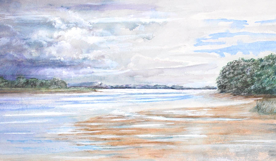 "St John's Lake/Estuary" watercolour 9" x 14"